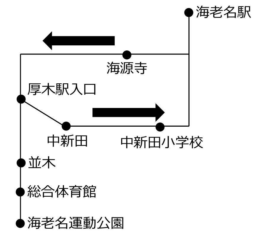 後の、海05海老名駅~有馬高校、に当たる系統が開業した。海老名市南部地区住民の足の確保と、1983年4月に開校した有馬高校への通学輸送が目的。開業時の時刻表は下表の通り。【広報えびな・1984年5月1日】| 海老名駅発 | 有馬高校発 |