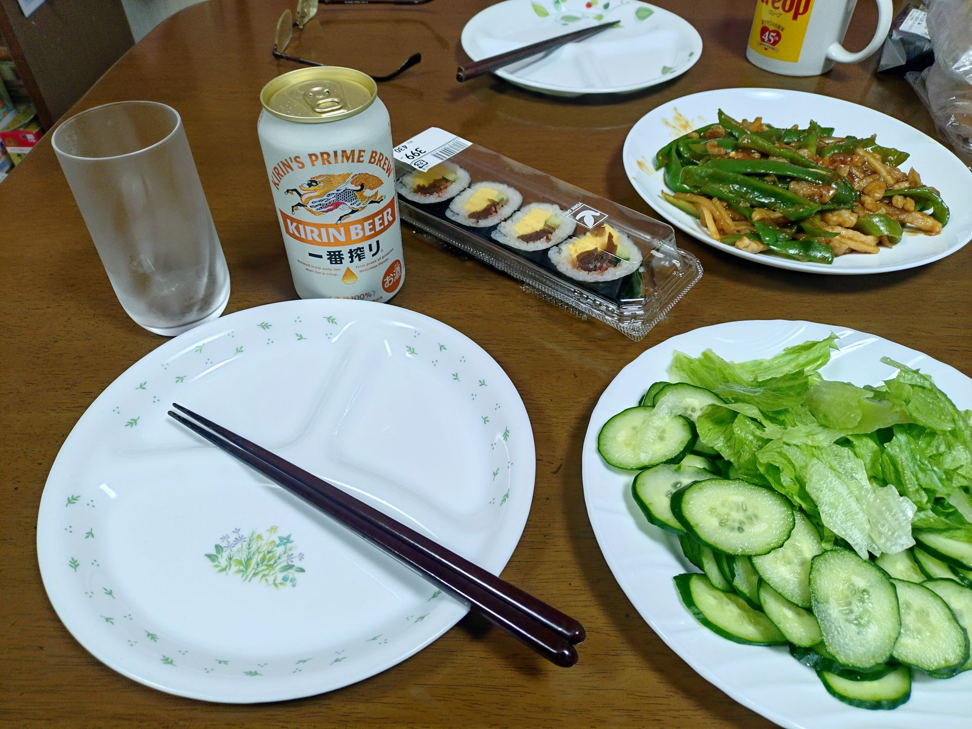 この画像は昨日のnorimakiの夕食なのですが、この日に限らず基本食事のお供は一番搾り(キリン)の350mLか500mL缶。他のビールに比べてあっさりしていて飲みやすい、っていうのが一番搾り推しな理由です。