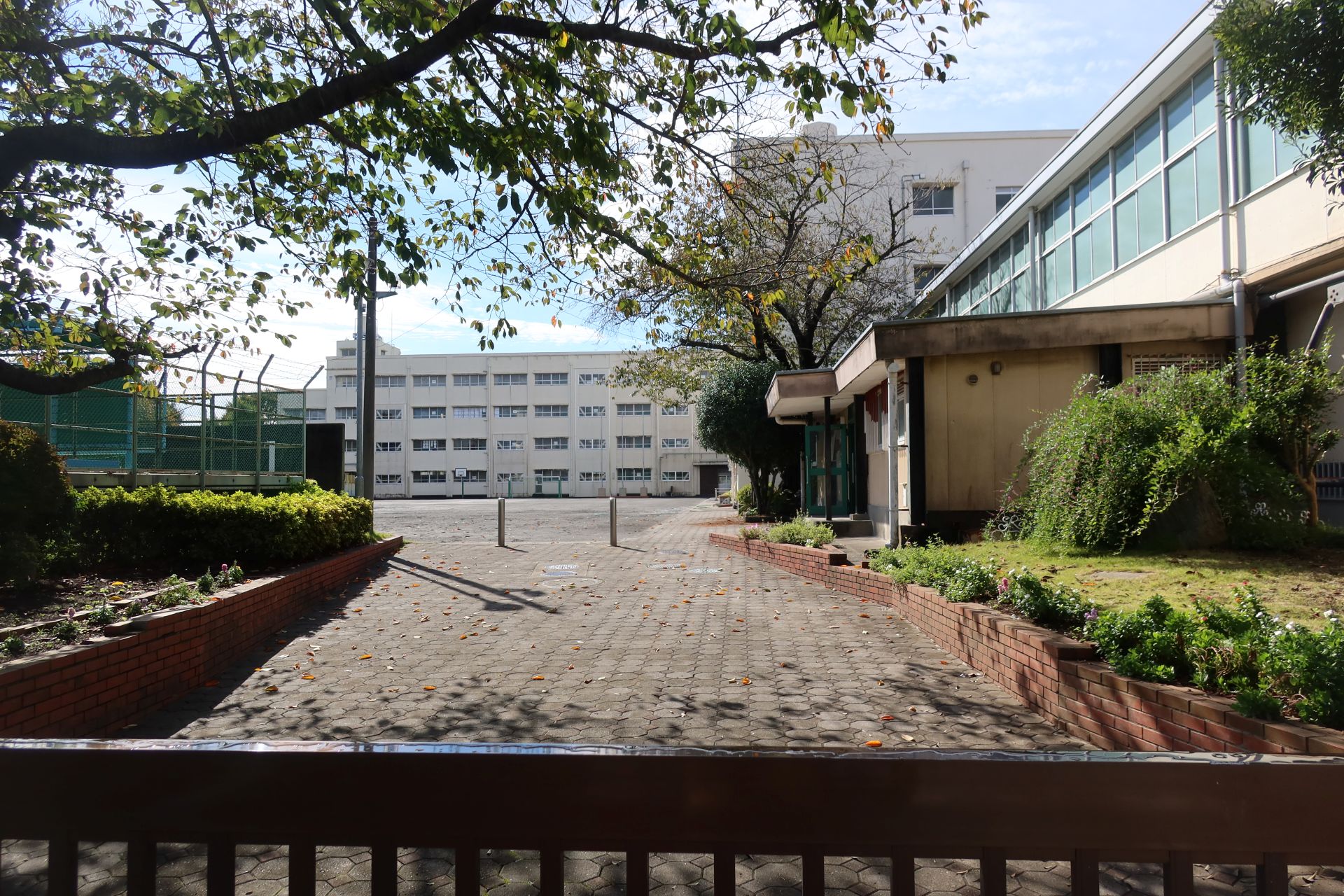 訪問したのは土曜日の午前中だったのですが、学校の校庭ではテニス部とハンドボール部が練習をしていました。