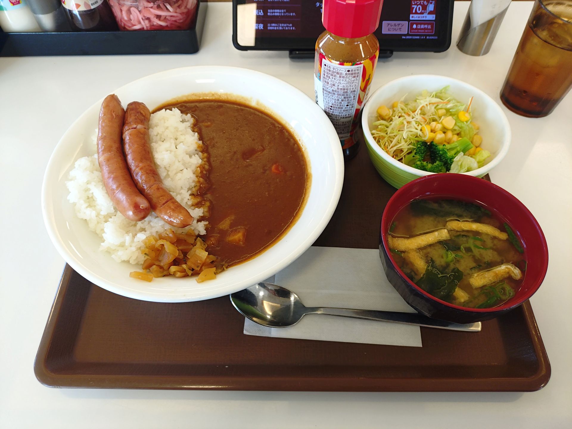 今日の昼食は「すき家」でソーセージカレー大盛+みそ汁サラダセット1,130円(税込)。何とすき家で1,000円オーバーしてしまいましたが、それだけにボリュームは満点。カレールーはそこまで辛くなかったので、一緒についてきた辛口ソースを少し欠けてみたら逆にすごく辛くなりましたわ。若干食べ過ぎたので食後のデザートはコーヒーのみ。