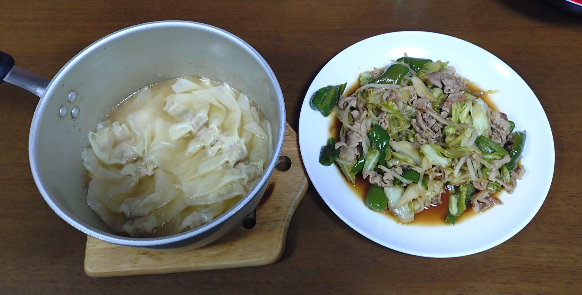 帰宅後の夕食のお供のビールは350mL。500mLにしたい衝動が湧いてきますが何とかセーブしています、偉いね自分!おかずのメイン鶏肉、小松菜、ゴボウと人参の汁物。それに餃子、混ぜるだけのチンジャオロースでした(これは当家初登場のメニューかも知れません)。テレビは録画しておいた湯めぐり鉄道の道後温泉の回。