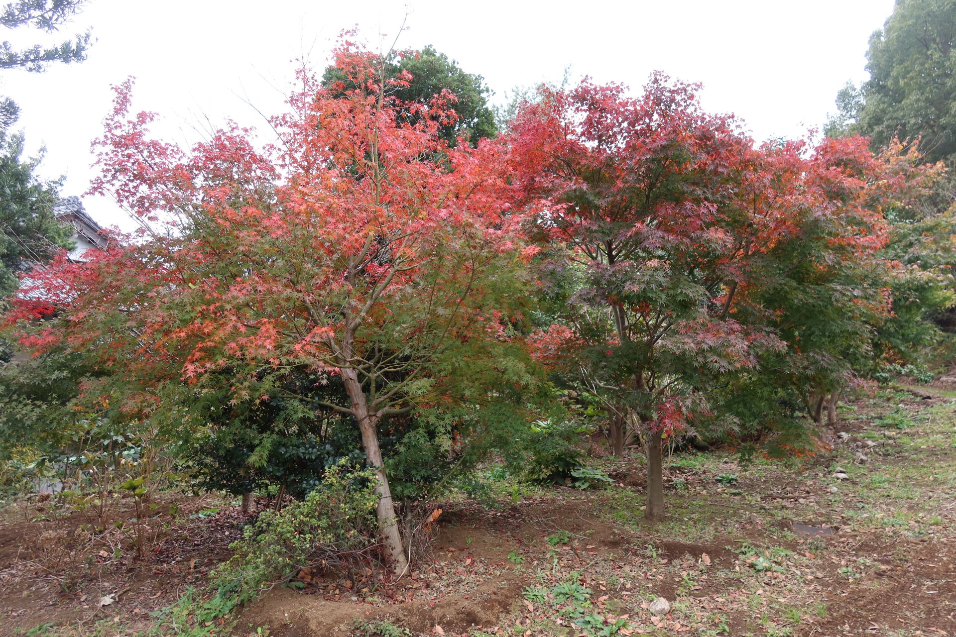 そこから学校の周回道路を裏手に回ったところは森になっていて、モミジが色づき始めていましたが、曇り空だったせいもあり、くすんだ感じになってしまっていたのが残念。中へ続く道があったのですが、私有地かどうか分からなかったので入るのは断念して戻ってきました。