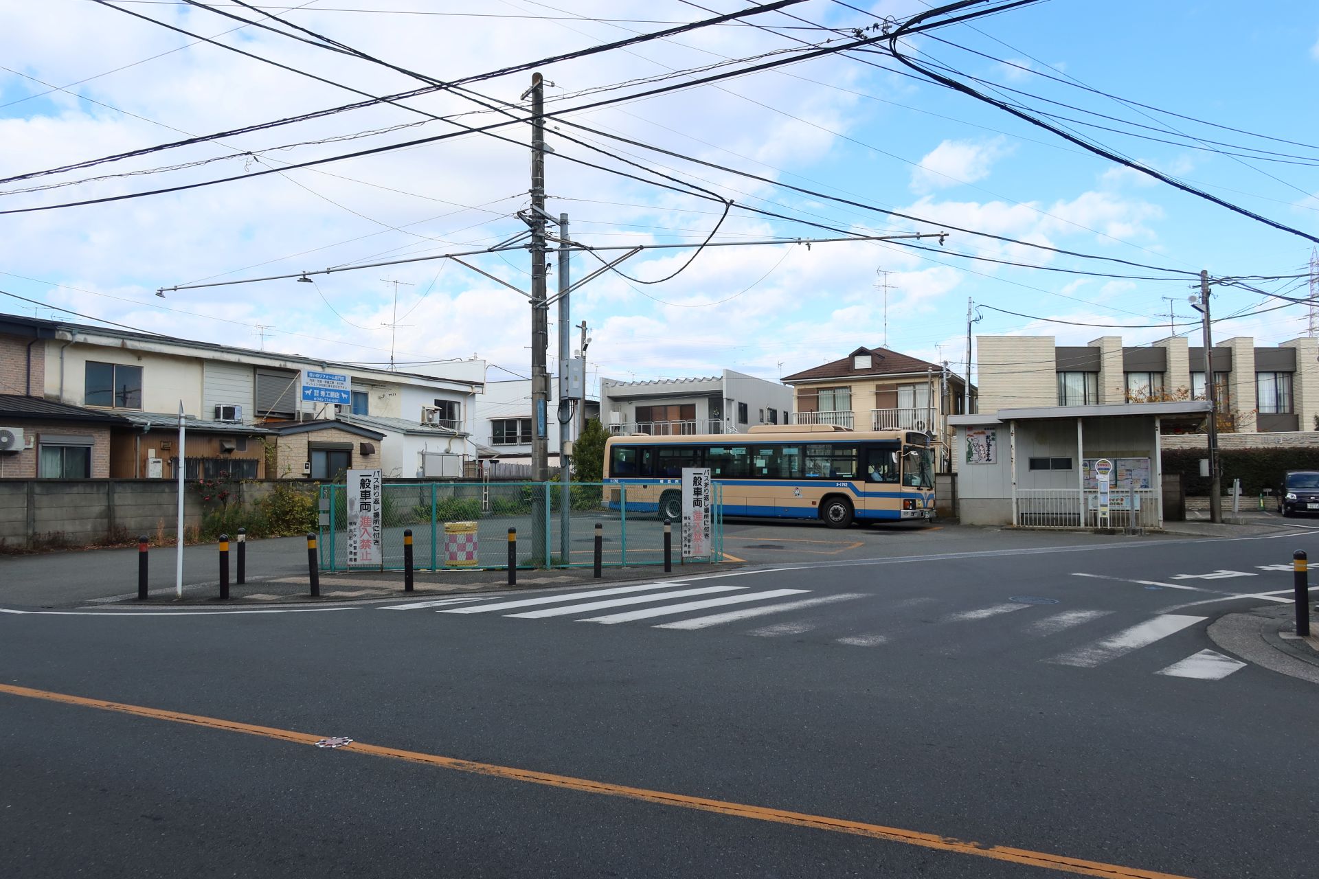 東戸塚駅から歩いてすぐのところ、住宅やマンション、コンビニが立ち並ぶような環境のところにあります。学校前は交通量の多い道に面しており、東戸塚駅と川上団地を結ぶバスの停留所もありましたが、運転本数は平日が1日5本、土曜休日は1日4本という少なさ!前はもっとあったような気がするのですが、歩いても行けない距離だから、ということなのでしょうか。